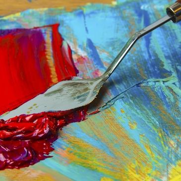 My art is mostly acrylic on canvas. I will add flotrol and silicone to enhance some of the paintings. Flotrol will help the paint to move on the canvas. Silicone will bring up the "cells" or bubbles which looks great in the water paintings. I swipe and swirl to move the paint mostly with palatte knives, but also use a blowdryer or
